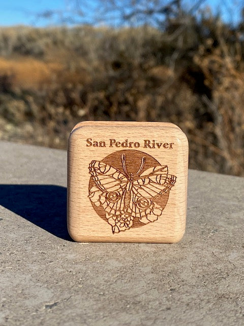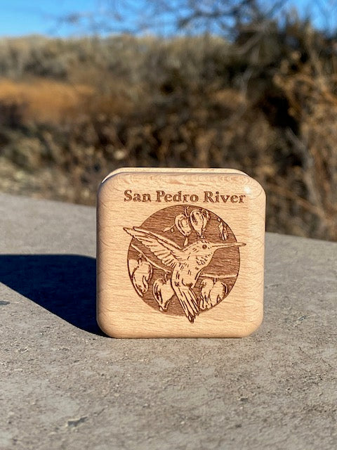 This tiny hinged rosewood box features a strong magnetic catch that closes with a satisfying snap! Choose from laser engraved image of a Hummingbird or Butterfly.